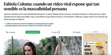 ¿Qué tan sensible es la masculinidad del peruano? La actriz Fabiola Coloma la puso a prueba al lanzar un video para sus redes sociales que ha dado que hablar. Aquí, una reflexión suya sobre el acoso y el machismo. Además, cuenta cómo es la vida de una actriz peruana en México.